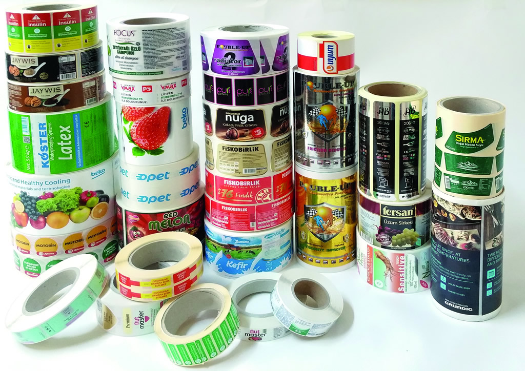 Mineral oil labels, Chemical paint labels, Battery labels, Machinery and chemical industry labels, Electronic goods labels, White goods labels, Cooker products labels, Heating products labels, Refrigerant products labels, Durable consumer goods labels, Chemical raw material labels, Petroleum products labels, Textile product labels, Industrial labels, Shoe polish labels, Storage labels, Barcode labels, Toy labels, Construction material labels, Tyvek labels, Carpet and bedding labels, Thermal labels, Security labels (fragile label – egg shell style labels) / Covering labels (Surge) / Double layer label (Sandwich) / Transparent labels, Advertising labels